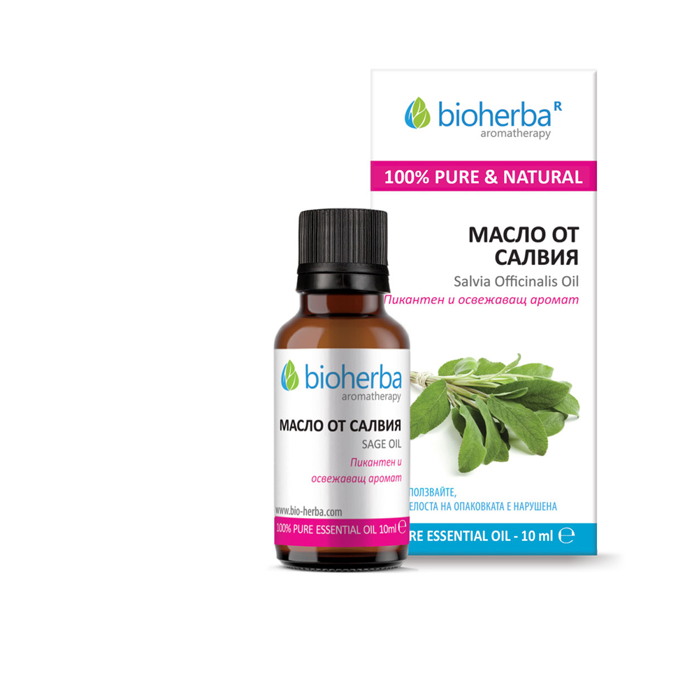 Етеричното масло от салвия (Salvia Officinalis), известно още като масло от градински чай, се извлича чрез парна дестилация от листата на растението и има остър, тревист и леко камфоров аромат. То е високо ценено заради своето антисептично, противовъзпалително и хормонално балансиращо действие. Маслото е подходящо при кожни проблеми, акне, пърхот и възпаления, като същевременно подпомага регенерацията на кожата. В ароматерапията действа ободряващо, подобрява концентрацията и подкрепя психическата яснота, особено при умора и напрежение. Салвията е известна и с благоприятното си влияние върху женския хормонален баланс, особено при симптоми на ПМС и менопауза. Трябва да се използва внимателно и в ниски концентрации, особено при чувствителна кожа.