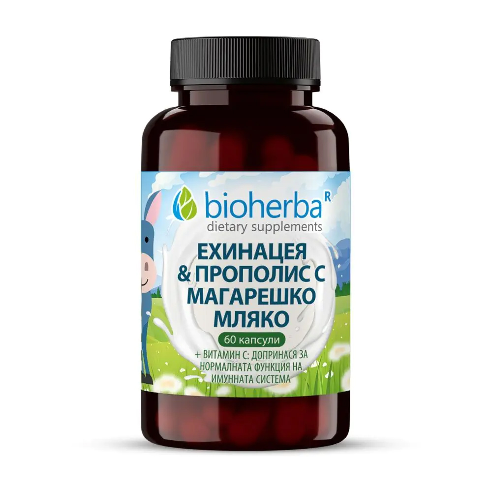 Ехинацея с магарешко мляко от Bioherba е иновативна добавка, съчетаваща силата на ехинацеята и пчелния прополис с ценния екстракт от магарешко мляко. Тя има мощно имуностимулиращо и антивирусно действие, подходяща за защита през грипния сезон, оздравителни периоди и повишен риск от инфекции. Ехинацеята подпомага здравето на дихателните пътища и усилва естествените защитни механизми на организма. Прополисът допълнително засилва антимикробния ефект и подпомага регенерацията на тъканите.